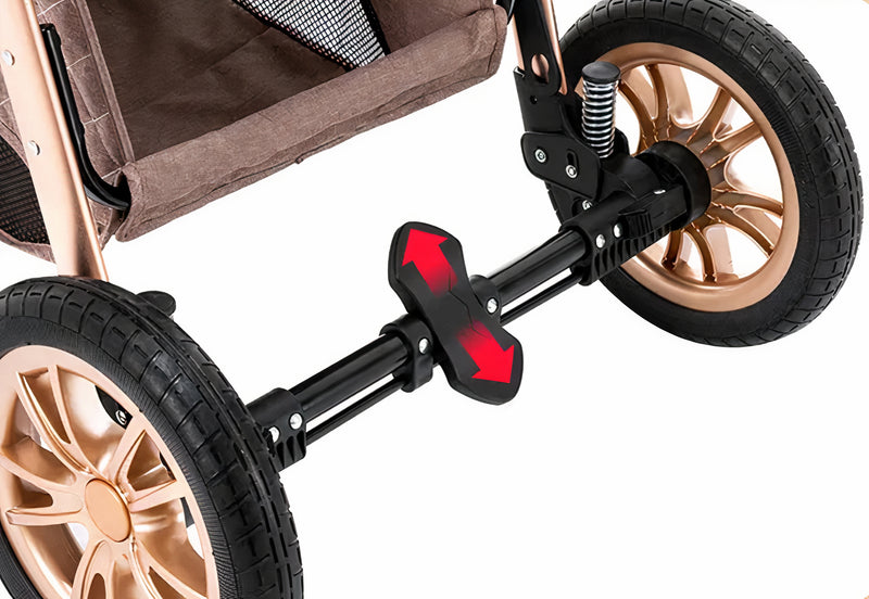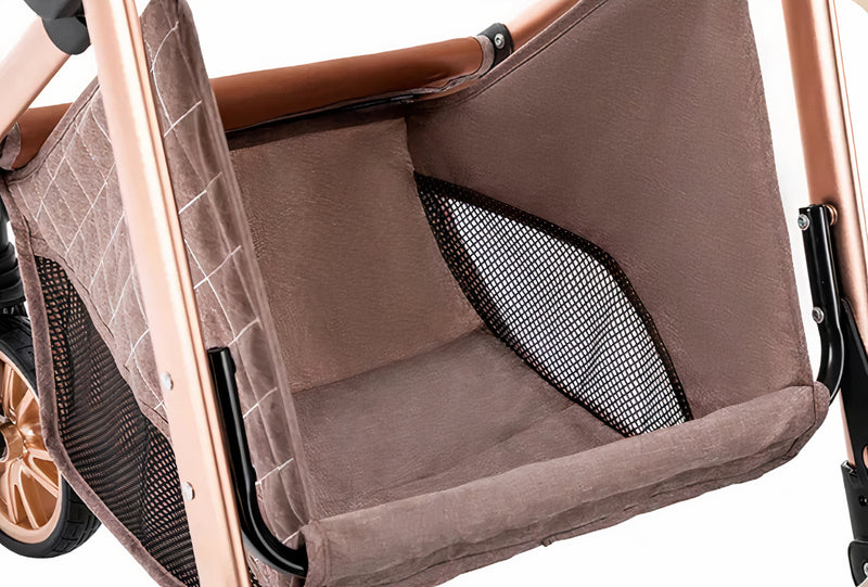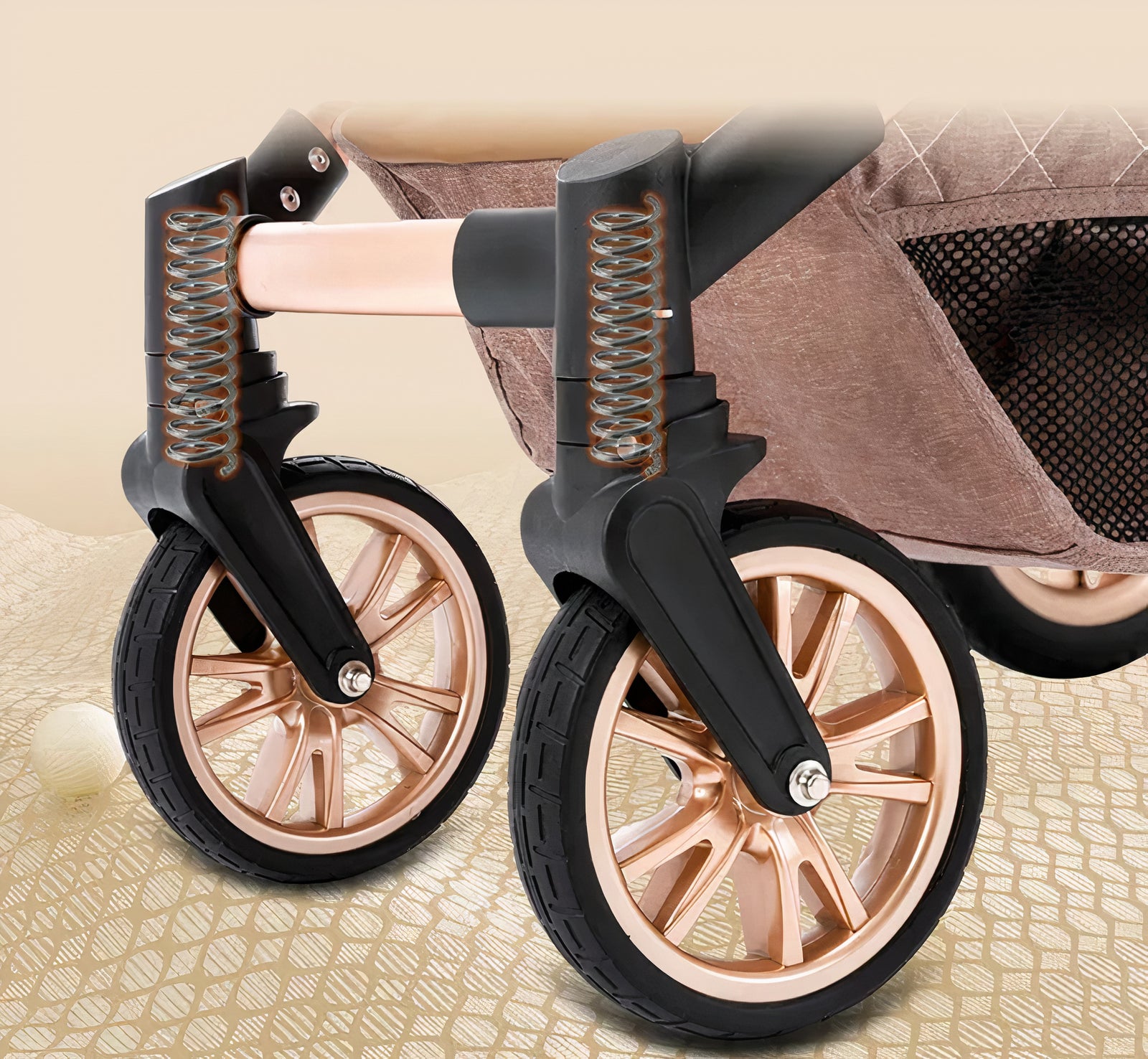Doživite najbolj gladko vožnjo za vašega malčka s sistemom vzmetenja na štirih kolesih. Naš voziček brez težav drsi po katerem koli terenu, zagotavljajoč nedosegljivo udobje. Od neenakih pločnikov do pustolovskih poti, vaš otrok lahko uživa v nežnem in oblazinjenem potovanju.