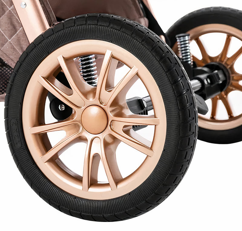 Neodvisno podvozje s štirikolesnim sistemom absorpcije udarcev zagotavlja gladko in udobno vožnjo tudi po neravnih terenih, s čimer poskrbi za varnost in dobro počutje vašega otroka.