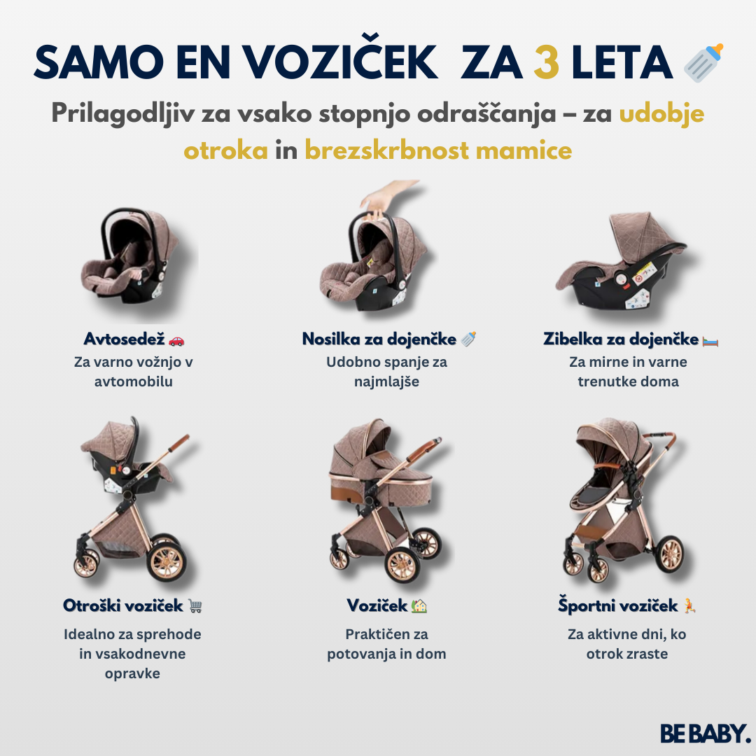 Otroški voziček 3v1 LUXURY – popolna kombinacija praktičnosti, varnosti in udobja za vsakega starša in otroka.