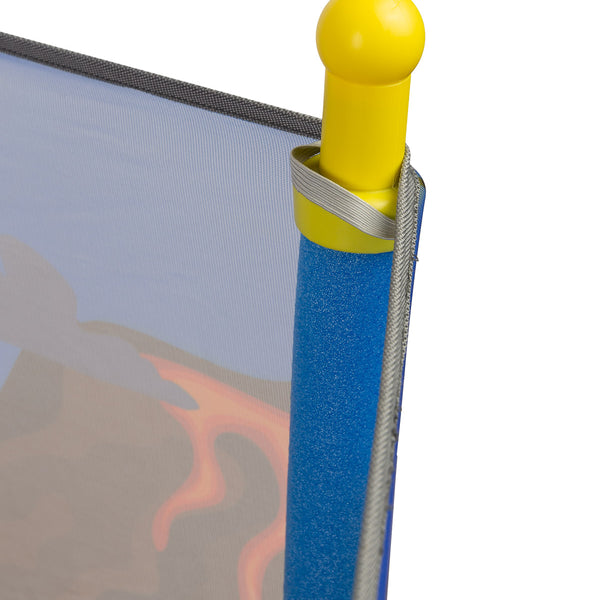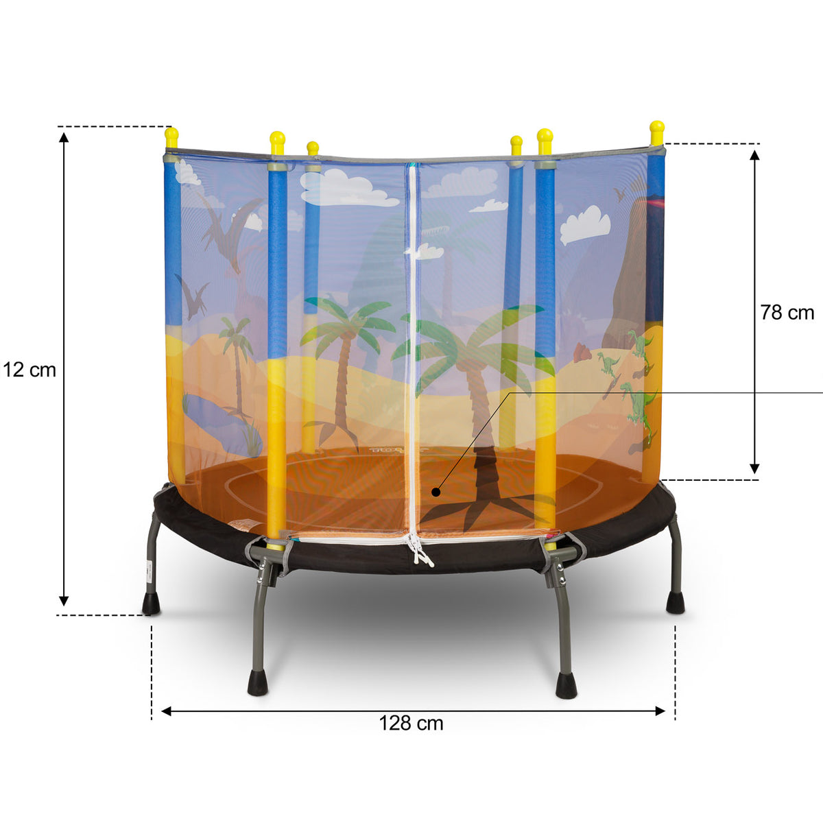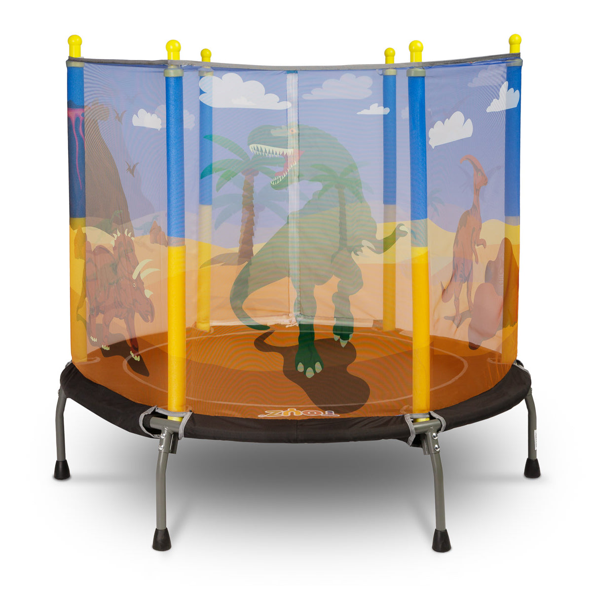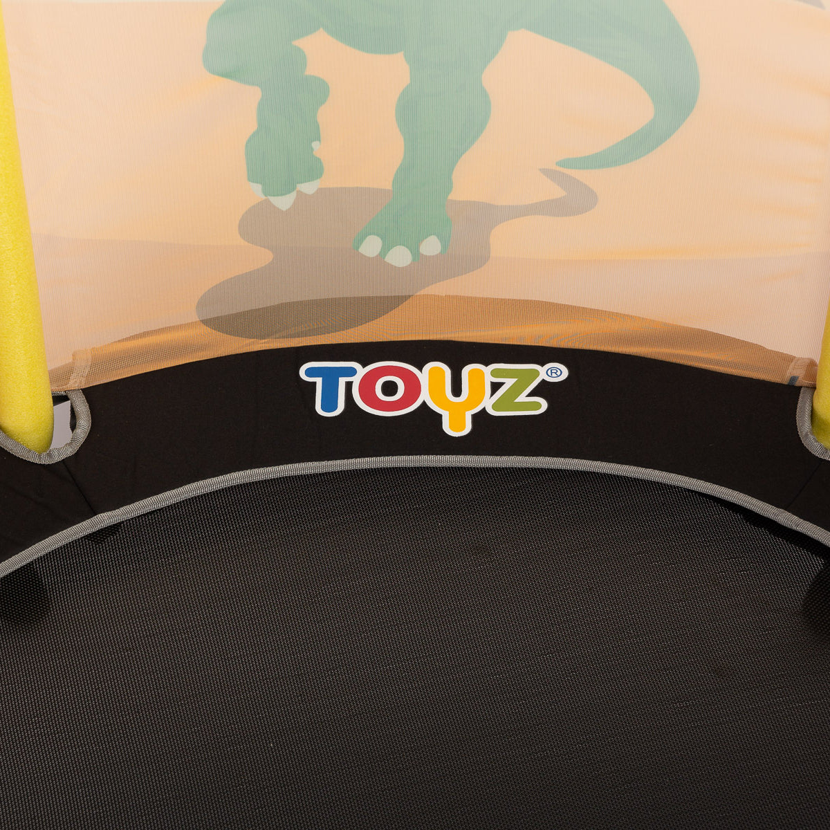 Otroška trampolina znamke TOYZ je odlična rešitev za aktivne otroke. Trampolina, narejena iz trdnih materialov, bo vašemu otroku zagotovila ure varne in razburljive zabave, tako doma kot na prostem. Struktura je zasnovana z mislijo na varnost najmlajših, opremljena z zaščitno mrežo in stabilnimi nogami z nedrsečimi blazinicami. Večbarvni tematski vzorci na mreži bodo vašega otroka popeljali v svet poln avantur.