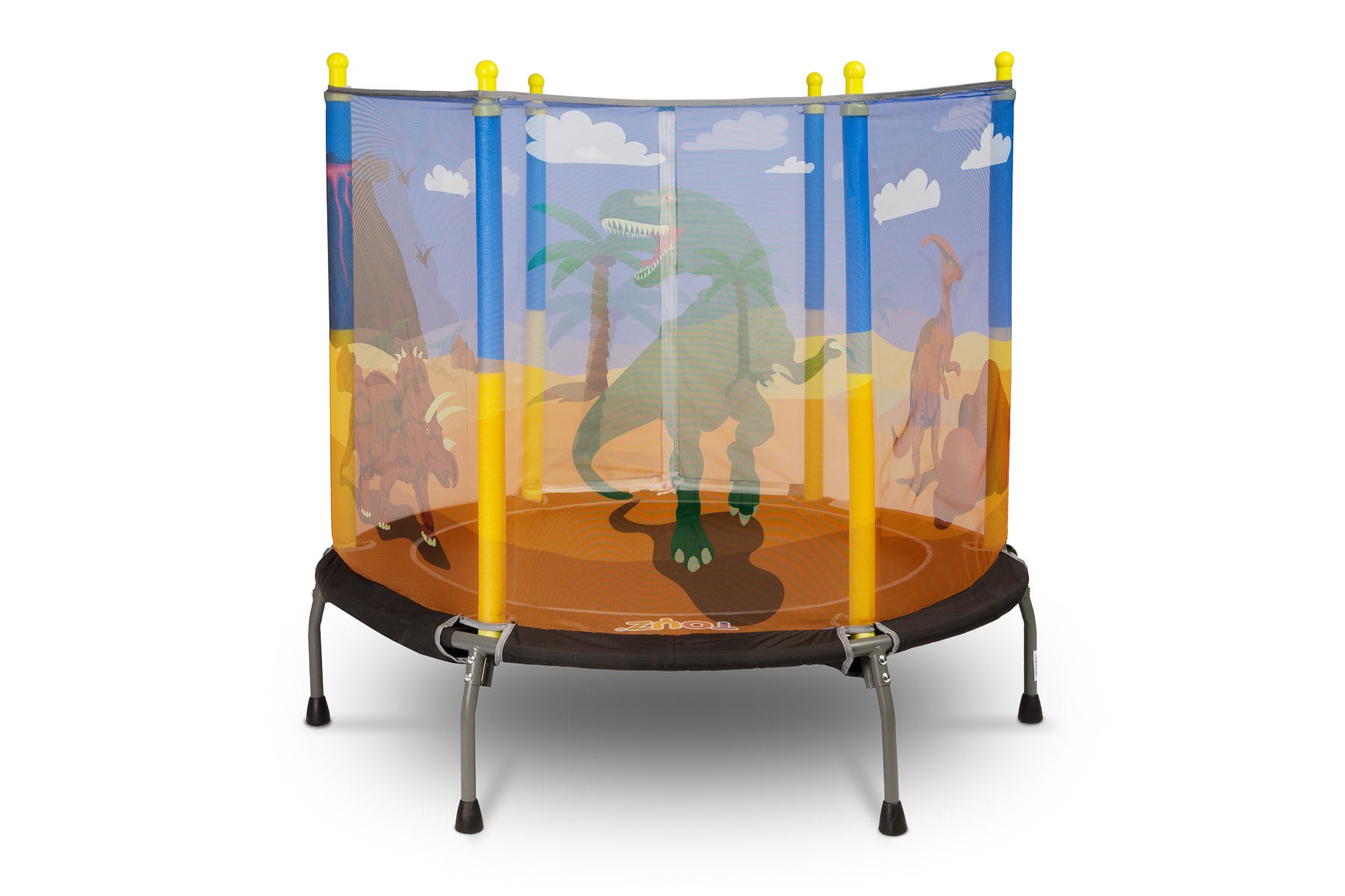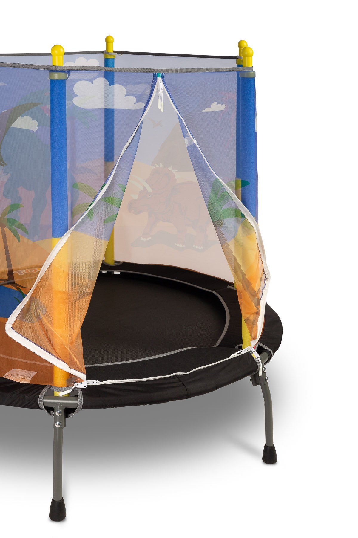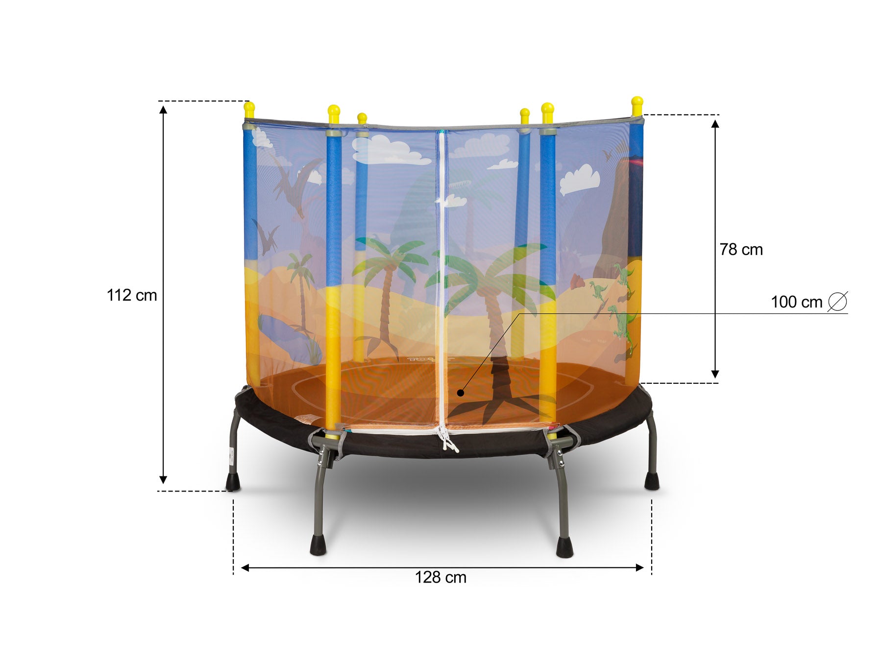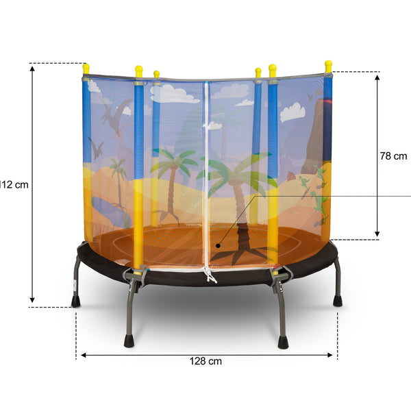 Otroška trampolina znamke TOYZ je odlična rešitev za aktivne otroke. Trampolina, narejena iz trdnih materialov, bo vašemu otroku zagotovila ure varne in razburljive zabave, tako doma kot na prostem. Struktura je zasnovana z mislijo na varnost najmlajših, opremljena z zaščitno mrežo in stabilnimi nogami z nedrsečimi blazinicami. Večbarvni tematski vzorci na mreži bodo vašega otroka popeljali v svet poln avantur.