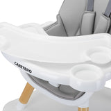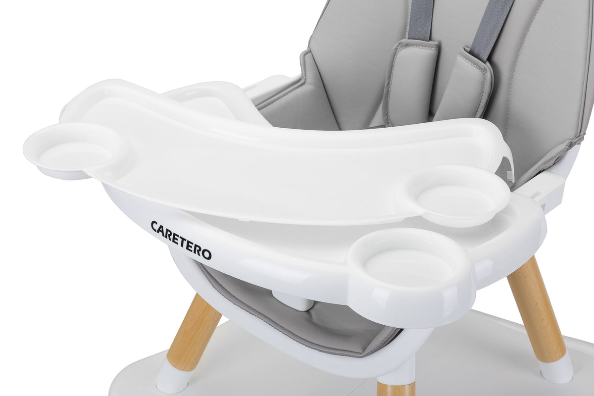 Tuva je izdelan iz visokokakovostnih materialov, kar ga naredi trpežnega in varnega. Ima pettočkovne pasove in dodatno zaščito na pladnju, ki preprečuje zdrs otroka. Skrb za udobje otroka in starša, stolček ima dvojni, nastavljiv pladenj z dvema mestoma za skodelico. Sedež je mehak in enostaven za čiščenje.