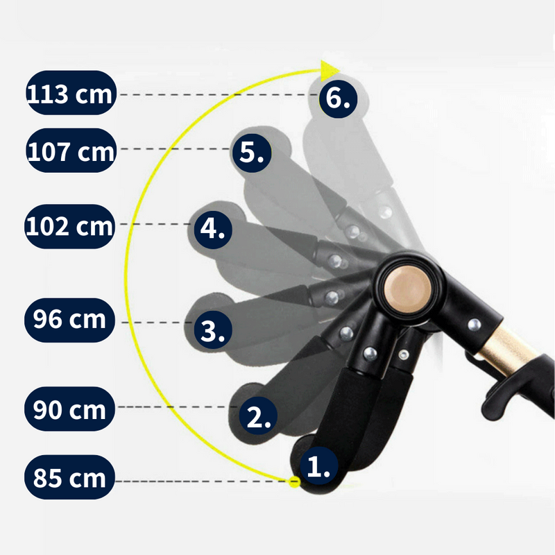 Je prilagodljiv voziček, ki raste z otrokom. Sedež je nastavljiv, kar omogoča udobje in varnost v vsaki fazi otrokove rasti.