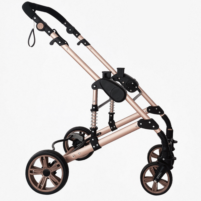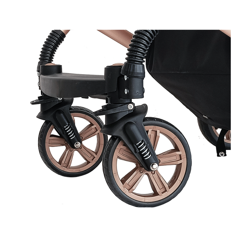Napredna tehnologija blaženja udarcev v našem vozičku zagotavlja neprimerljivo gladko in udobno vožnjo, s čimer absorbira neenakomernosti terena in ustvarja popolno okolje za vašega malčka.