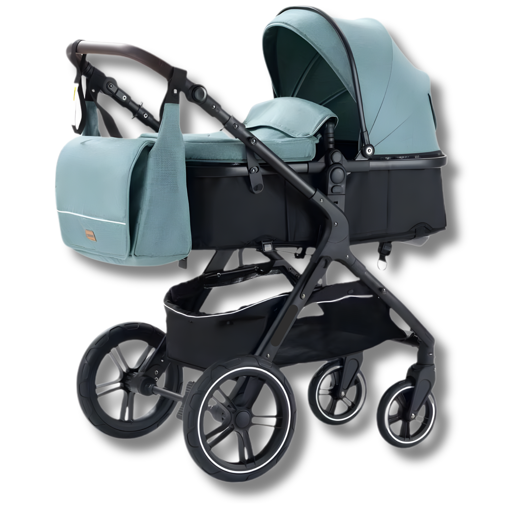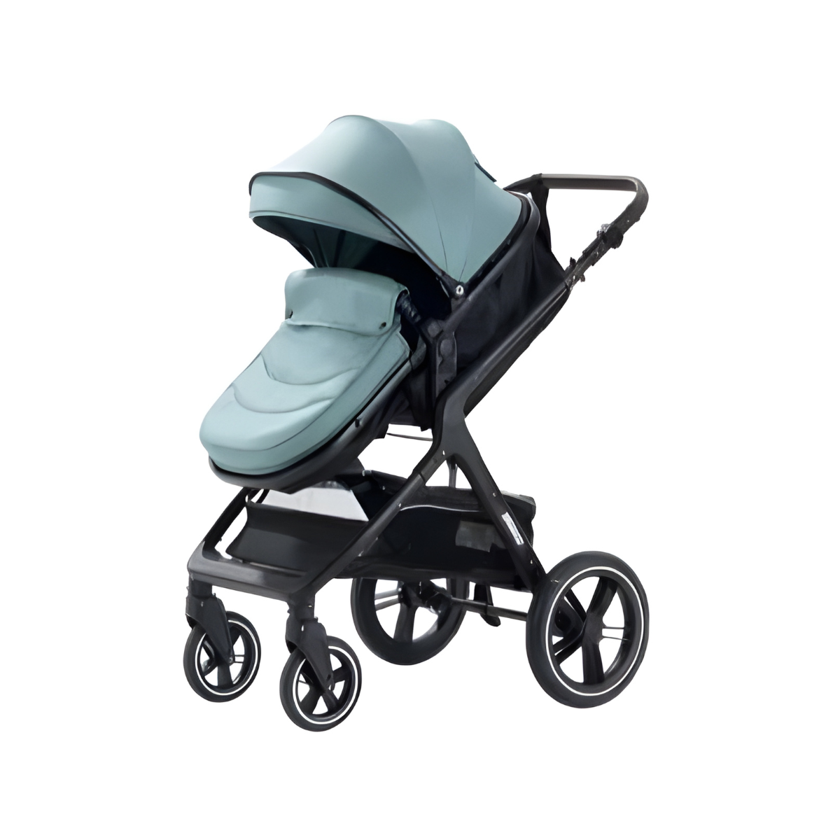 Voziček je opremljen s kakovostnim sistemom amortizacije, ki absorbira tresljaje in omogoča gladko ter udobno vožnjo tudi po neravnih poteh.