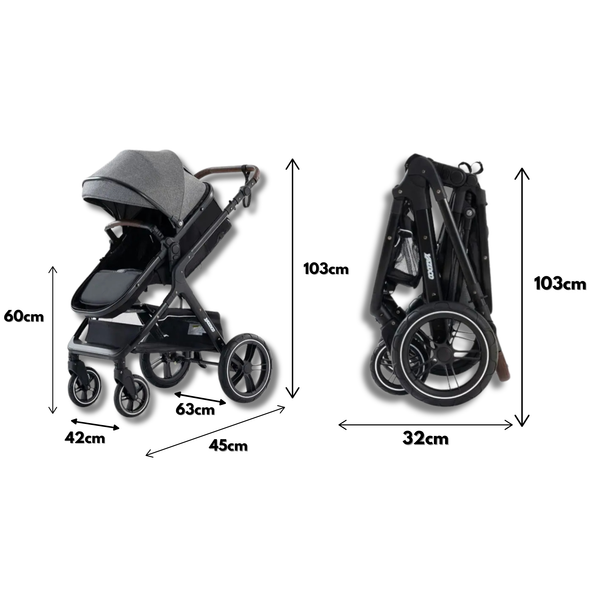 Izstopa zaradi svoje vsestranskosti in cene - združuje koŔaro, voziček in avtosedež v enem elegantnem dizajnu. Ponuja tudi vrhunsko udobje, stil in varnost.